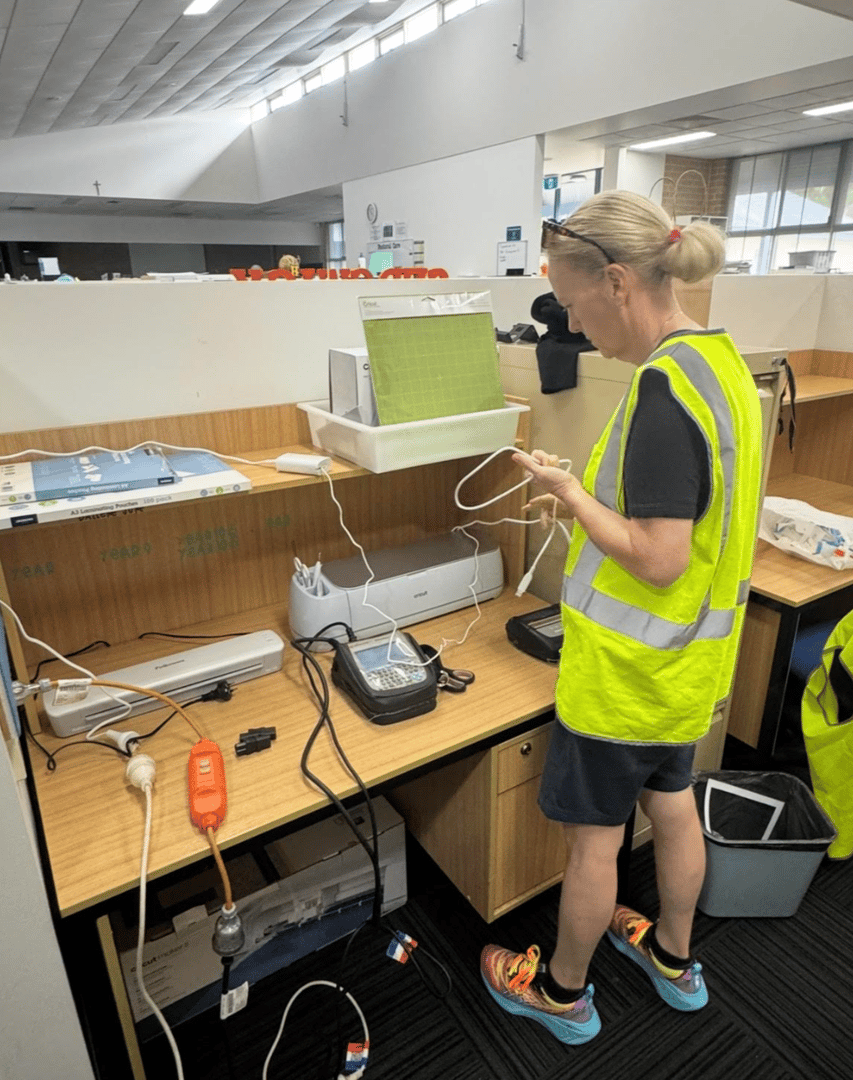 Technician performing electrical test and tag at a Macarthur workplace